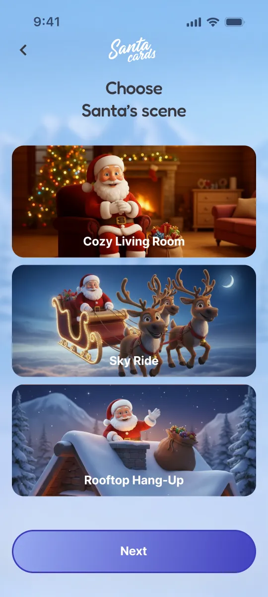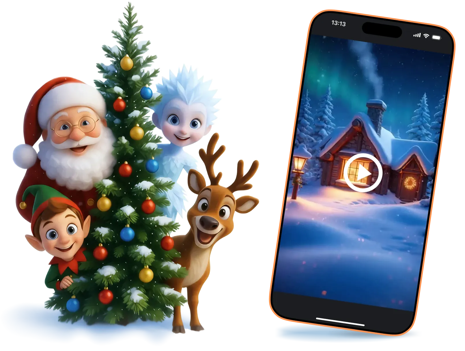 Add the recipient’s name, age, and your custom message. Santa Cards turns it all into a fully personalized holiday video within minutes, ready to share anywhere — with family, friends, or the whole world.